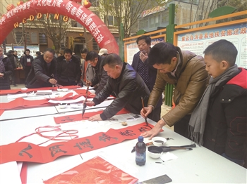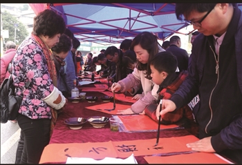▶春节临近,市场年味浓浓,各大超市备足年货迎接春节的到来。1月27日,记者在市区某大型超市看到,市民在展台前选购糖果。 □记者 卢维 摄 ▼1月27日,由紫云县委宣传部牵头联合县文联及书法家协会,在紫云自治县易地扶贫搬迁县城集中安置点举行2019“我们的中国梦”文化进万家·写春联送春联活动。一副副吉祥如意的春联,一张张红红火火的“福”字,让人感到了浓浓的年味。 □记者 姚福进 摄 ▲1月27日,西秀区书法家协会、摄影协会、西街办事处在西街大市场共同开展“弘扬我们的价值观 家家户户贴春联”活动,为辖区居民群众免费送春联、送祝福,免费为居民照全家福,并洗印相片发给居民。 书法家挥毫泼墨为排队等候的居民书写他们喜欢的春联和满意的福字。摄影家协会的摄影师则为和和睦睦的一家人拍全家福。新春来临,活动为广大群众送去了温暖和祝福。 □记者 刘现虹 摄 |