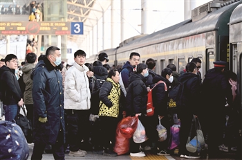 2月4日,旅客在安徽省亳州火车站进站乘车。