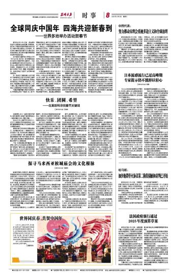 新华社北京2月4日电 综合新华社驻外记者报道:金蛇狂舞,四海同春。连日来,中国驻多国使领馆纷纷举办活动,与海外侨胞、国际友人共庆佳节。形式多样、精彩纷呈的春节文化演出和庆祝活动接连上演,春节的喜庆氛围持续在世界多地绽放光彩。 由中国驻巴基斯坦大使馆主办的“开门过大年·我们在一起”新春特色活动日前在巴首都伊斯兰堡举行。巴政党、智库等各界代表及在巴华侨华人、中资企业、媒体和留学生代表等百余人参加活动。使馆青年外交人员、中巴两国青少年带来了武术、舞蹈、诗朗诵等节目。来宾还体验了包饺子、茶艺等中国传统民俗。 另一场名为“温暖迎春·共庆中国年”的新春庙会日前也在伊斯兰堡举行。庙会的文艺节目精彩纷呈,现场设有中国书法、中华美食、中医义诊、中式茶艺、中国典籍、领保知识宣传等二十多个展位,通过丰富多彩的活动让巴基斯坦友人近距离体验中华传统文化魅力。 中国驻阿塞拜疆大使馆与巴库两所孔子学院联合举办“中国年·在一起”中阿青年联欢会、春节文化体验等系列活动,庆祝“春节”申遗成功后的首个“中国年”。联欢会上,中阿两国青年表演了各具特色的文艺节目。在春节文化体验活动中,来自巴库国立大学孔子学院的代表展示了舞龙、春联、剪纸、灯笼制作等春节传统习俗。 中国驻拉脱维亚大使馆同拉脱维亚华侨华人联合会日前共同举办了新春联欢会。中国驻拉脱维亚大使唐松根向中拉跨国婚姻家庭赠送了绘有中国工笔画的特色挂历。联欢会上,观众齐唱《歌唱祖国》《我和我的祖国》,抒发海外游子的乡愁与赤诚。 中国驻摩洛哥大使馆日前举办2025年华侨华人新春招待会。在摩华侨华人、中资企业代表及摩友好人士等300多人欢聚一堂,共迎新春。招待会现场张灯结彩、喜气洋洋。使馆外交官、中国留学生、中国文化中心工作人员等带来了合唱、舞蹈、乐器演奏、诗朗诵、武术等精彩节目,赢得阵阵掌声。 一场名为“中佛文化盛宴”的庆祝蛇年春节演出2月2日晚在佛得角圣维森特岛明德卢市举行。演出融合佛得角传统音乐与舞蹈、中国歌曲、杂技、武术、艺术体操及中国传统舞蹈,为当地观众带来一次别开生面的视听体验。演出协调人兼艺术制作人诺伊莉萨·桑托斯对新华社记者说,这场文化盛宴不仅促进了佛中两国文化交流,还为佛得角青年提供了展示才华的舞台。 春节期间,英国的庆祝活动覆盖伦敦、北爱尔兰、剑桥、泽西岛、布里斯托尔等多地。从锣鼓喧天的巡游庆典,到融合了歌舞表演和非遗展示的市集;从爱丁堡和伯明翰等地的新春音乐会、联欢会,到约克充满创意的汉服“快闪”表演……形式多样、内容丰富的春节庆祝活动,为当地民众增添了不少温暖与欢乐。 借着春节契机,英国不少博物馆也推出中国主题文化体验活动:伦敦码头区博物馆推出一系列免费工坊,教授扇子舞、丝带舞、生肖主题手工等技艺;1月27日至2月9日期间,50辆伦敦巴士搭载“你好!中国”国家旅游形象、欢乐春节标识、中国吉祥蛇形象等宣传画,把春节祝福洒满伦敦城;皇家格林尼治天文台举办的中国天文展更是一票难求。 中国驻匈牙利大使馆日前举行“温暖迎春·共庆中国年”系列慰侨活动启动仪式。中国驻匈牙利大使龚韬为侨团侨社、中资企业员工、留学生及领事协助志愿者代表发放“慰问包”和“暖心包”,并委托其向外地同胞转交慰问物资。 中国驻缅甸大使马珈向缅甸华侨华人团体代表发放“暖心包”,向在缅中资企业、地方商会、新侨、留学生代表等发放“春节包”,并送上新春祝福。 中国驻美国大使馆日前举办新春招待会,美国政府官员及部分国家驻美使节、在美华侨华人、中资机构、留学生代表等600多人参加。中国驻美国大使谢锋在招待会上致辞并向来宾致以新春祝福。来宾们还体验了熊猫主题游园会,走进熊猫主题展,欣赏文艺团体的精彩演出,互致祝福。 中国驻纽约总领馆日前举行2025年“温暖迎春·共庆中国年”活动,中国驻纽约总领事陈立向出席活动的100余名侨团和留学生代表发放了内含福字春联、春节贺卡、米花酥和如意吉祥挂牌等物的“暖心包”。多名侨胞和留学生代表现场致辞,表示愿为民族复兴、国家富强和中美友好作出贡献。 |