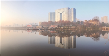 1月13日,冬日清晨的虹山湖公园,一层层白雾缓慢流动,在雾气和阳光的照射下,若隐若现的虹山公园,尤如一幅美丽的水墨画。 □记者 卢维 摄
